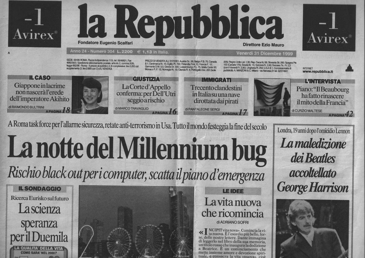mentre i computer del mondo si preparano a riconoscere le cifre nuove e temono il millennium bug