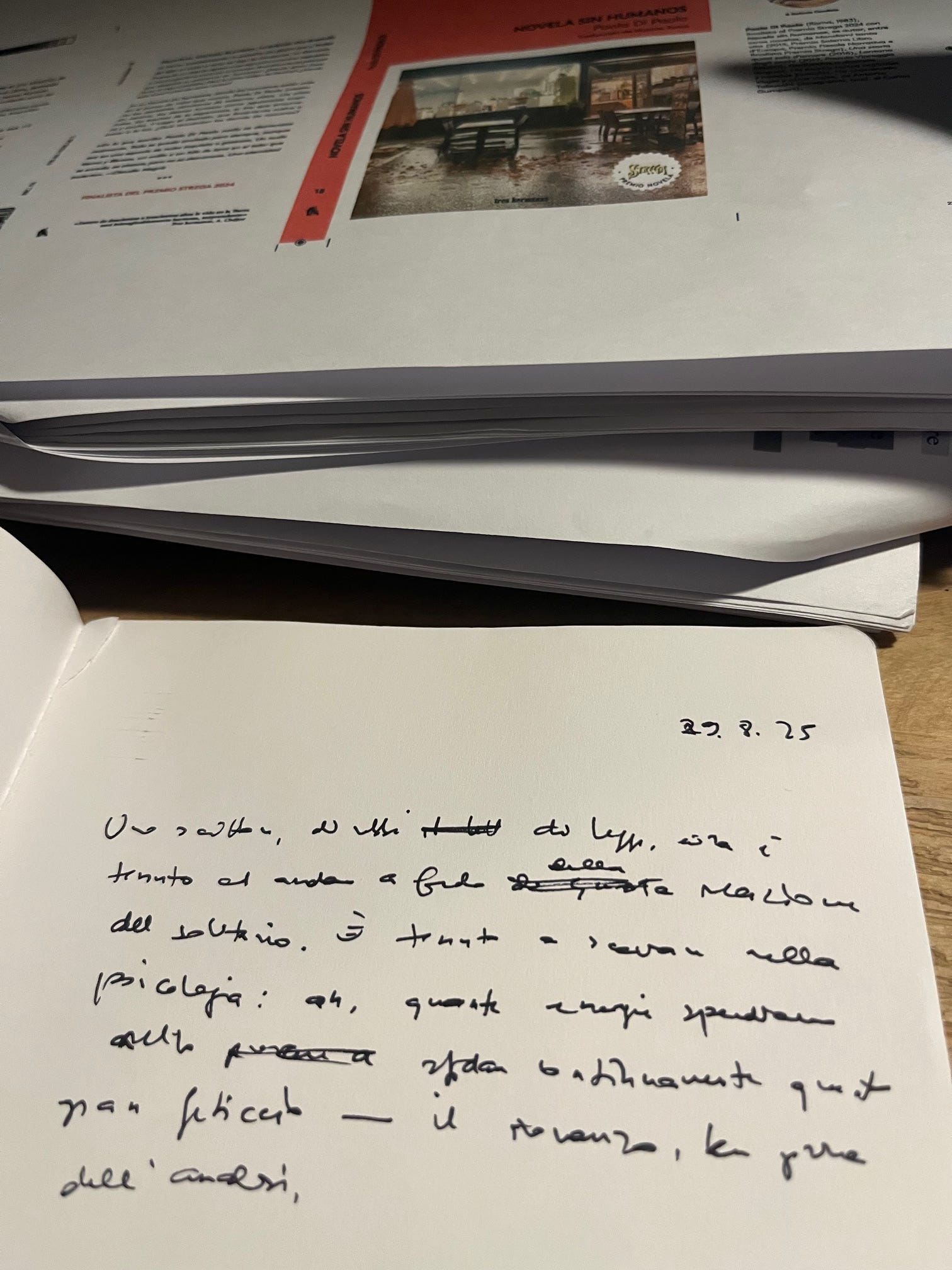 È successo. È arrivato. Come previsto. Non dico il blocco, ma la sosta più lunga, l’incertezza. Ho dovuto pensarci più a lungo. Ho cominciato a scrivere questa puntata tardiva su una spiaggia sarda, su un quadernetto, a mano. C’era molto vento.