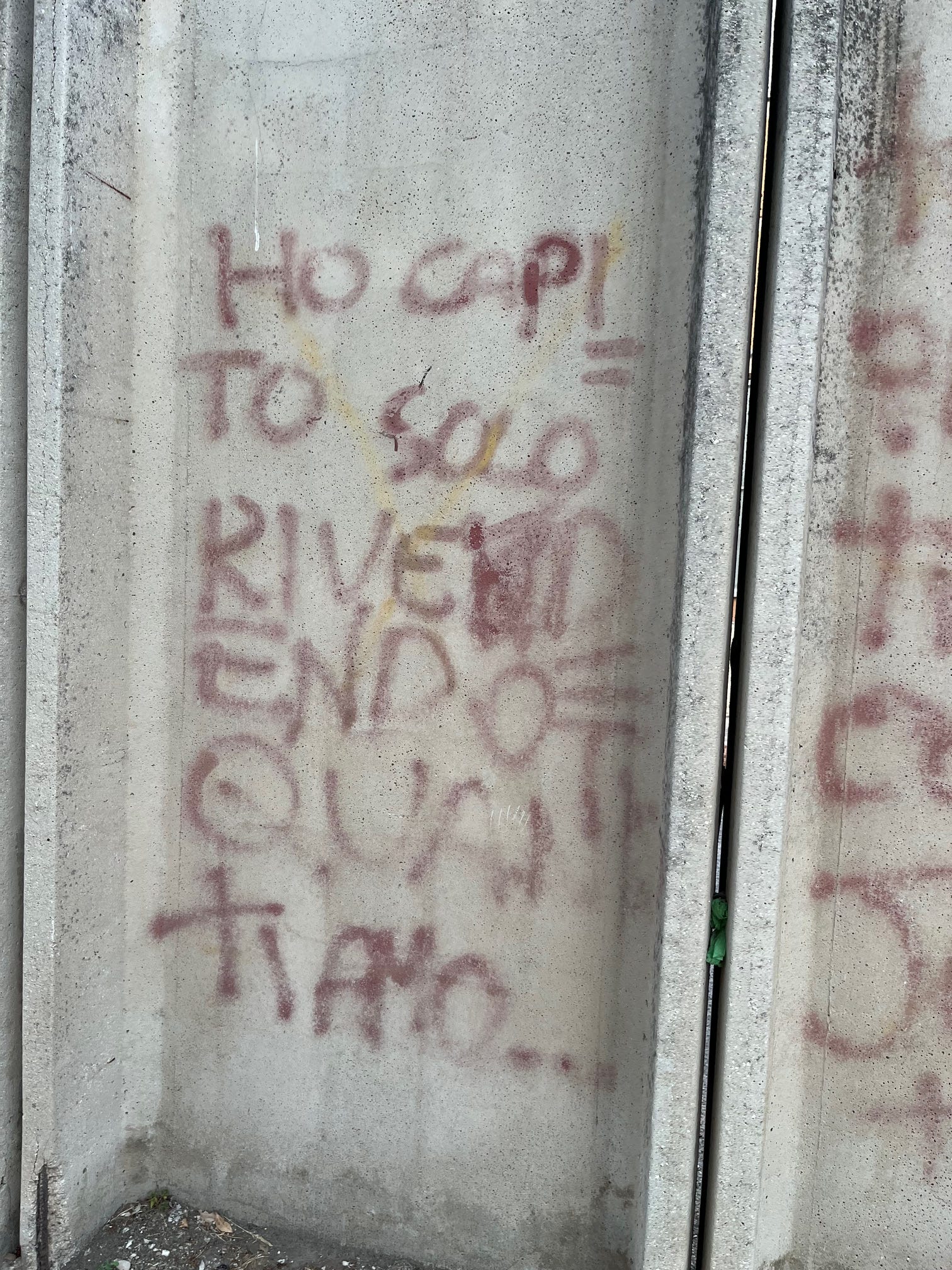 scattata in questi giorni, passando accanto a un muro, verso il mare